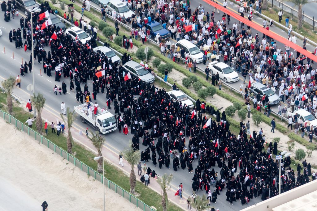 Archivbild (2011): Proteste in Bahrain während des Arabischen Frühlings. Der damalige Grand Prix wurde abgesagt. | © IMAGO / Pond5 Images2011 erreichten die Proteste des sogenannten „Arabischen Frühlings“ auch Bahrain. Zehntausende Menschen gingen gegen die Monarchie auf die Straße, das Land versank in schweren Unruhen. Der geplante Bahrain-Grand-Prix wurde damals abgesagt, ebenso ein Lauf der asiatischen GP2-Serie auf dem Bahrain International Circuit.