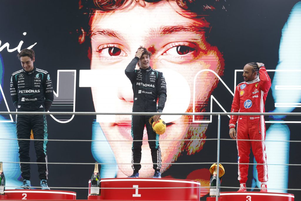 Das Gelächter zieht sich durch: Teamkollege George Russell und Ferrari-Fahrer Lewis Hamilton konnten sich ein breites Grinsen nach dem Fauxpas nicht verkneifen. Das Podium selbst war ohnehin außergewöhnlich: Mit Antonelli als Sieger, Russell als Zweitem und Hamilton als Drittem versammelten sich drei Mercedes-Generationen auf dem Treppchen: der aktuelle Superstar, ein langjähriger und tief mit Mercedes verwurzelter Vorgänger im Ferrari-Rot und der hausgewachsene Nachfolger.