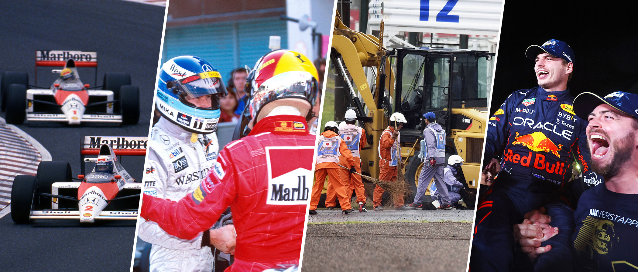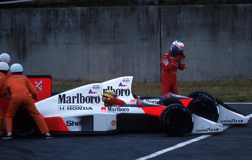 Ein Jahr später wechselte Senna übrigens zu Ferrari und krönte sich ebenfalls in Japan zum Weltmeister, weil Prost Senna nach dem Start abräumte. Eine bis heute unglaubliche Trilogie.